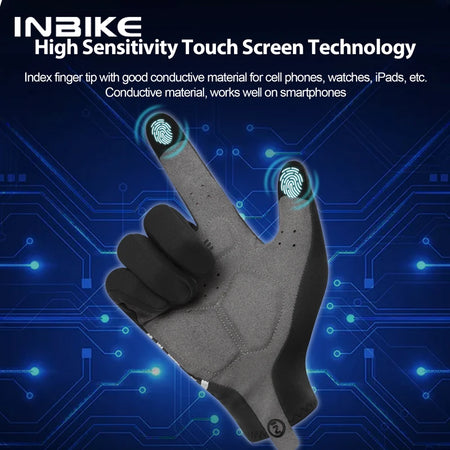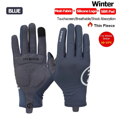 Зимние велосипедные перчатки INBIKE для мужчин, совместимые с сенсорным экраном, термальный флис, полноразмерные, противоскользящие