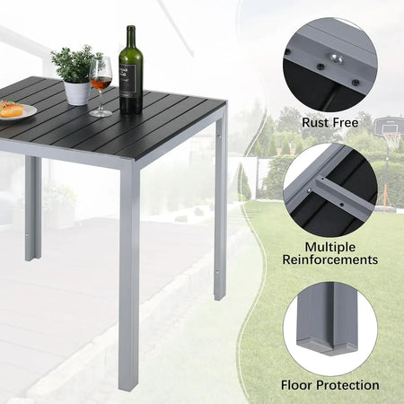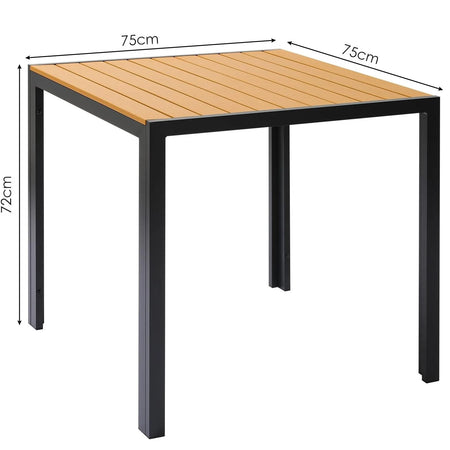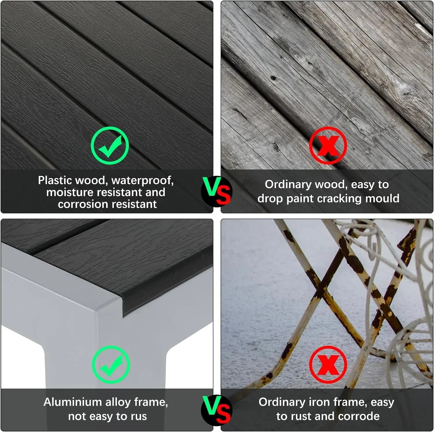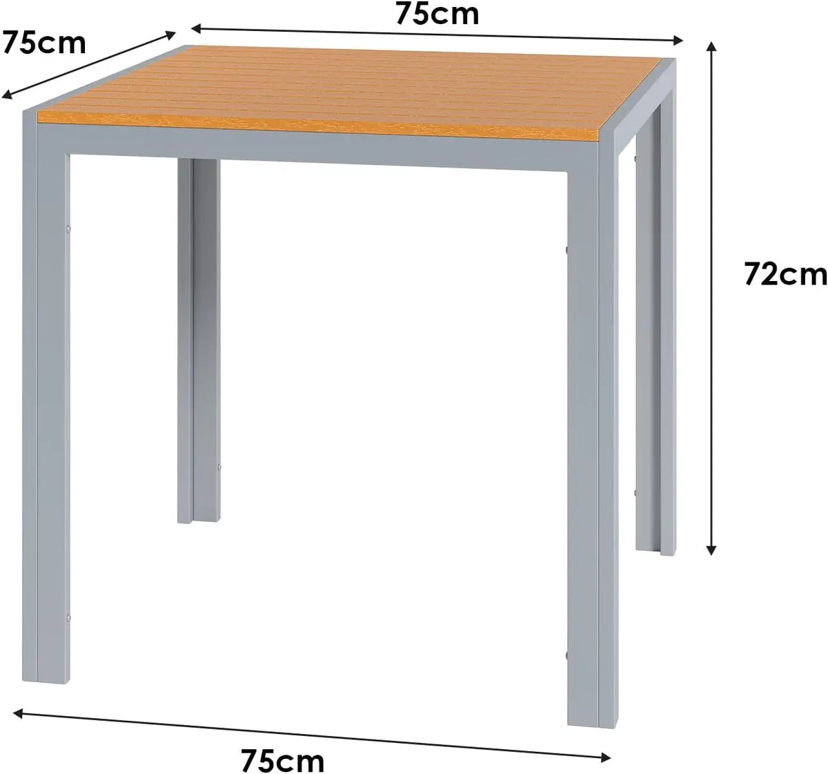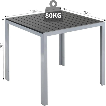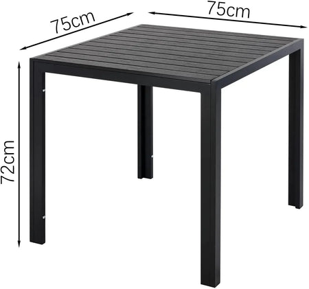 Познакомьтесь с уличным алюминиевым квадратным боковым столиком, водонепроницаемым спутником для любого открытого пространства. Размером 75x75x72 см, этот современный садовый стол сочетает чистые линии с практичной прочностью. Ржавеющая алюминиевая рама обеспечивает стабильную основу, а поверхность из древесно-пластикового композита WPC придаёт тепло дерева с устойчивостью пластика — идеально подходит для патио, балконов и садовых зон отдыха. Весом 8,1 кг и с грузоподъёмностью 80 кг, он достаточно прочен для повседневного использования на улице и непринуждённого обеда. Легкий в уходе и устойчивый к загрязнениям, этот стол сохраняет привлекательный вид при минимальном обслуживании. Доступен в цветах чёрный, серый или цвет дерева, чтобы соответствовать различным стилям декора. Разработан для работы на улице, он сочетает европейские и американские эстетические влияния с практичной конструкцией для долгого удовольствия.