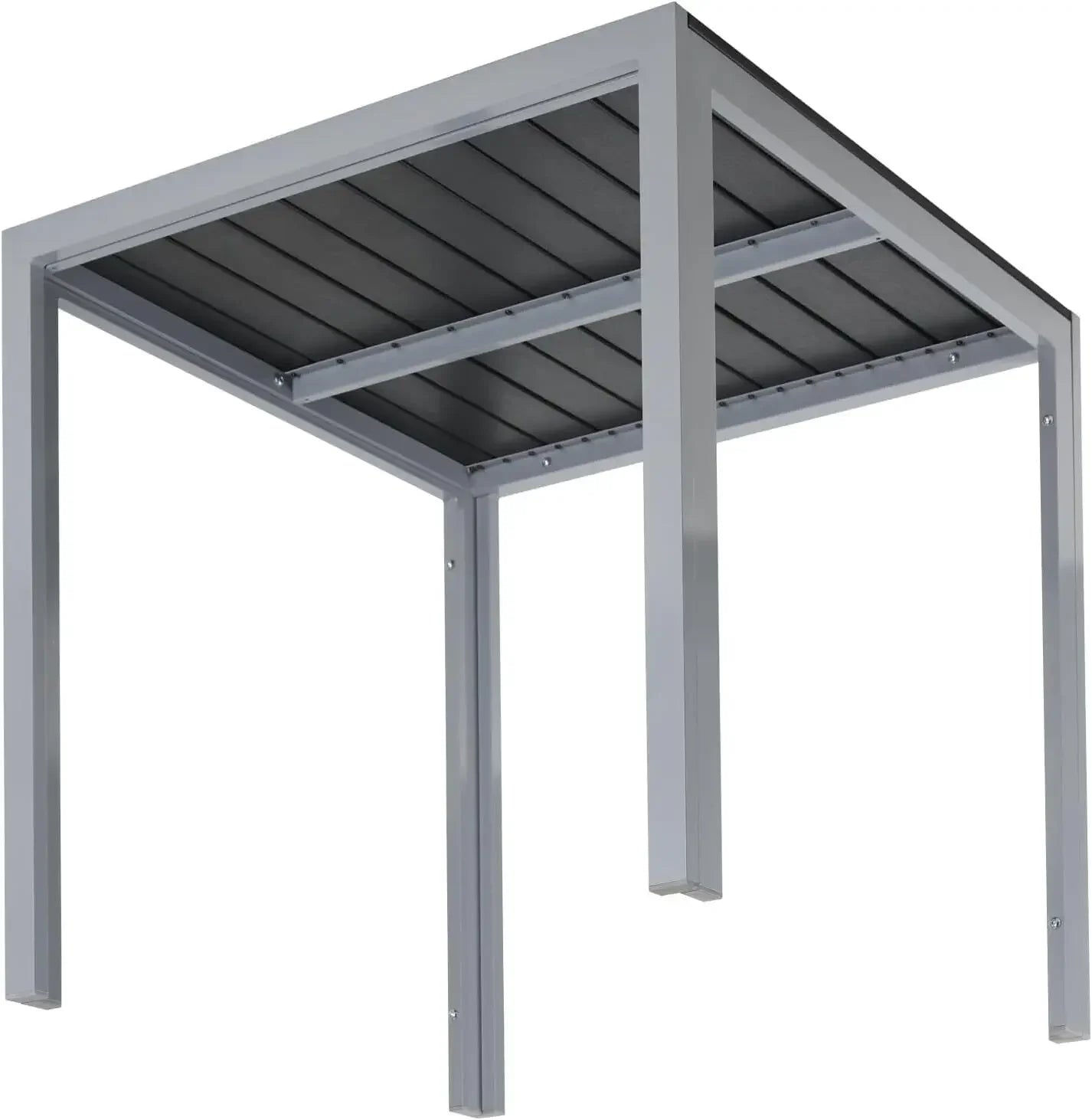- Материалы с низкими требованиями к уходу: водонепроницаемая алюминиевая рама и поверхность WPC устойчивы к теплу и погодным условиям, легко очищаются.
