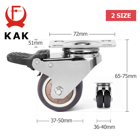 KAK 4 шт 2 дюйма тормозные поворотные колеса из резины повышенной прочности