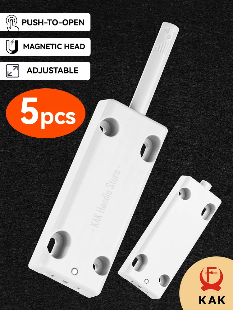 Откройте для себя KAK 5 шт. Магнитные защелки для шкафов в сером цвете — скрытое, современное решение для чистого, безручечного внешнего вида. Разработанные для работы с широким спектром дверей и ящиков шкафов, эти защелки используют сильную магнитную головку, чтобы двери надежно закрывались, но легко открывались простым нажатием. Идеально подходит для обновления кухонь, ванных комнат или офисного хранения с элегантным, минималистичным стилем.
