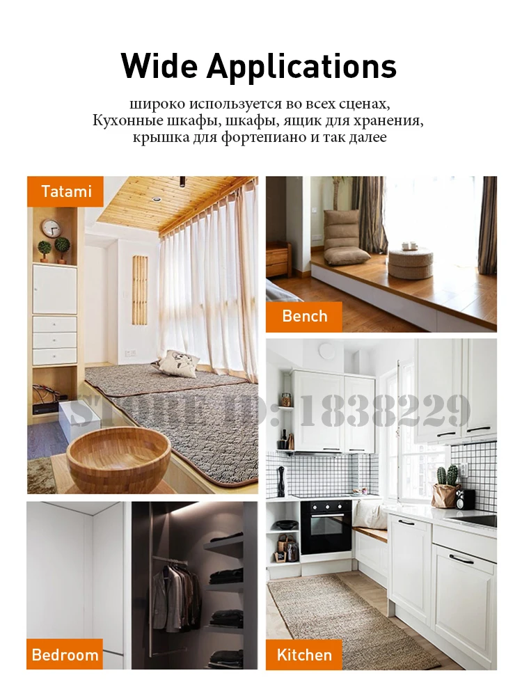 Особенности: Мягкое закрытие, мягкое открытие, поддержка дверцы шкафа или крышки коробки стабильно, чистый медный поршень, не ржавеет и долговечен
