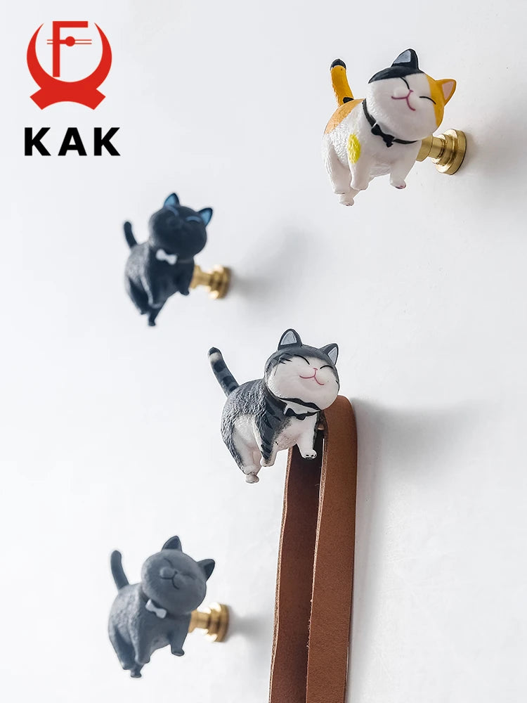 Кнопка для ящика в форме кота из латуни, ручка для шкафа, крючок для стены