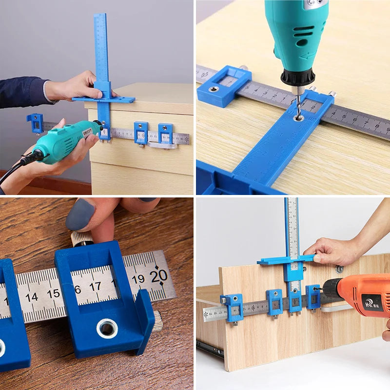 - Точное размещение отверстий: Регулируемый указатель обеспечивает постоянное расстояние для ручек шкафов, уменьшая необходимость в догадках.