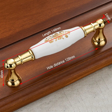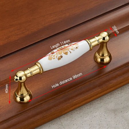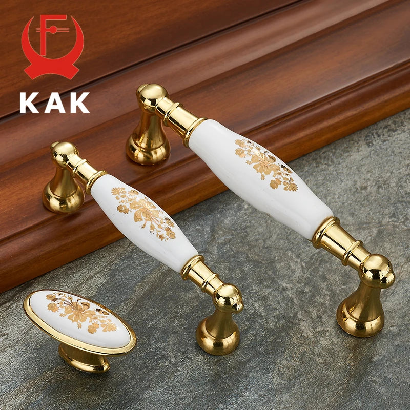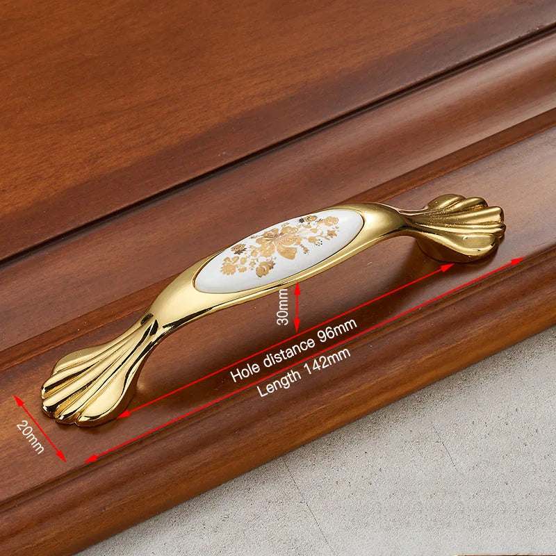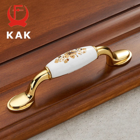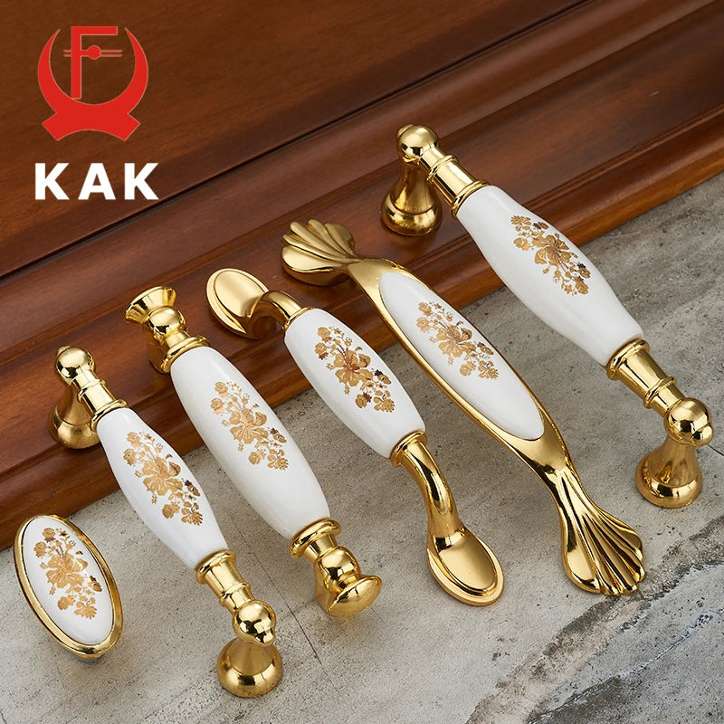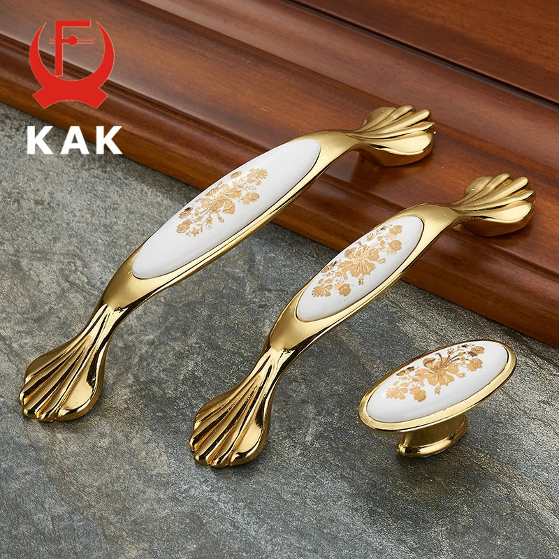 KAK Золотые цветочные керамические ручки для шкафов 96мм Европейский стиль