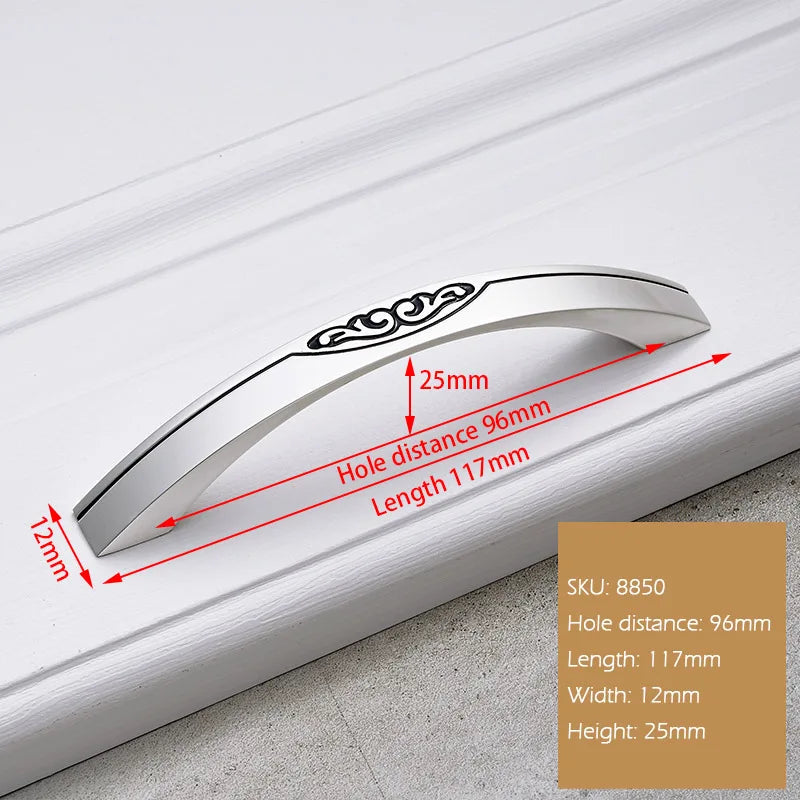 Обновите вашу мебель с помощью современных прорезных ручек для ящиков Kak из цельного цинкового сплава 96 мм. Изготовленные из прочного цинкового сплава и выполненные в элегантном серебристом цвете с черными акцентами, эти современные ручки придают чистый, вдохновленный европейским стилем вид кухонным шкафам, дверцам и ящикам. Присоединяйтесь к нашему сообществу и получите эксклюзивную скидку для фанатов!