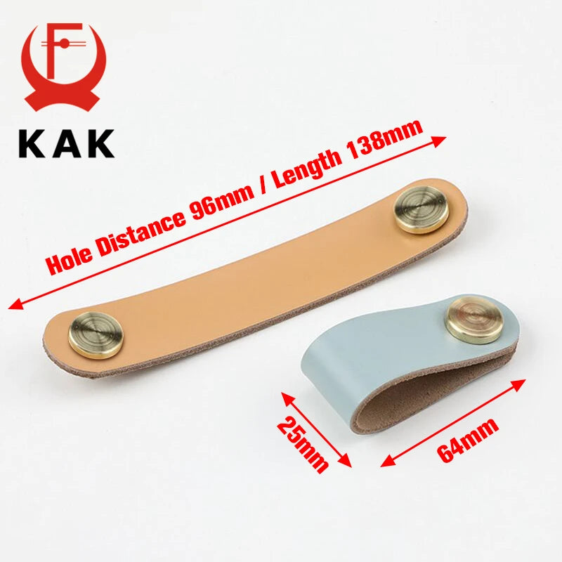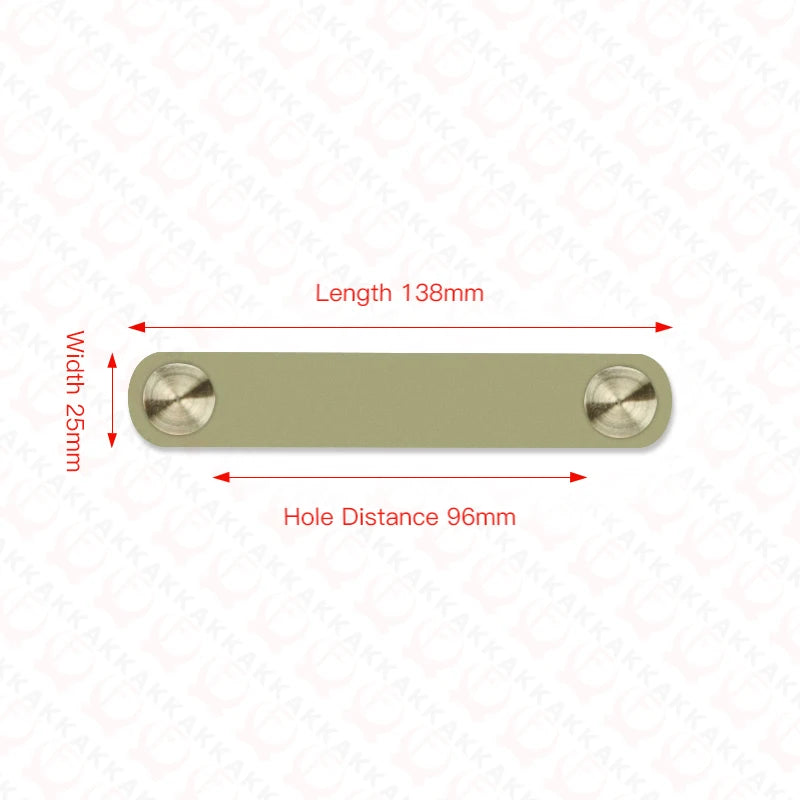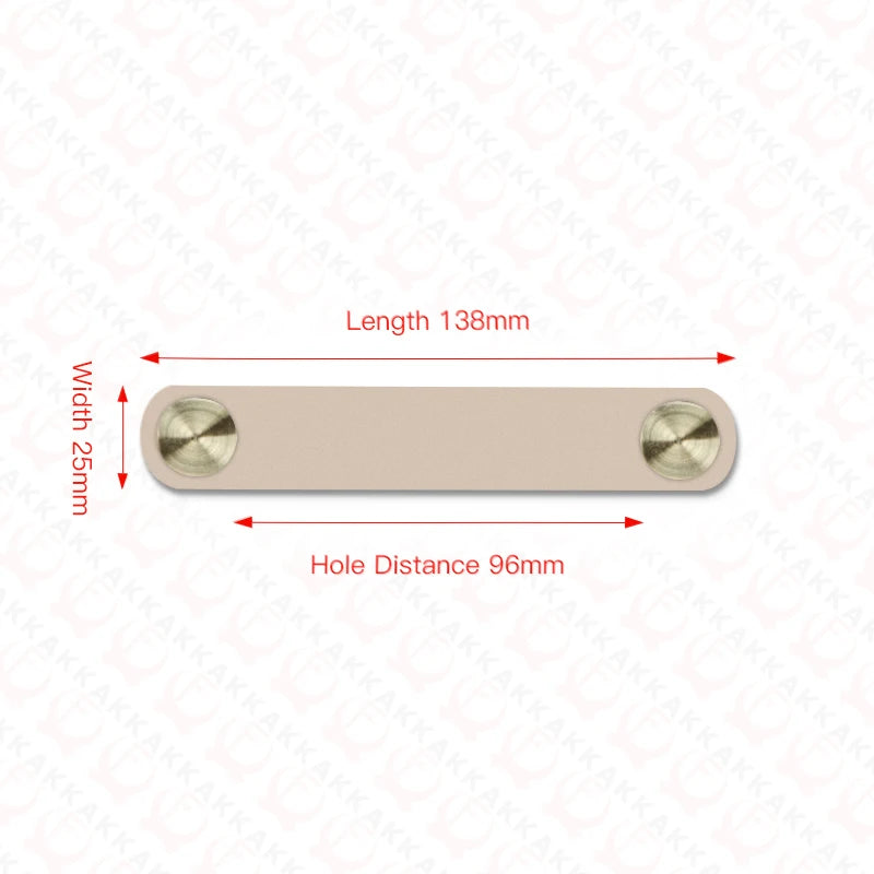 Поднимите уровень вашей мебели с помощью ручки для ящика Kak Nordic Leather Drawer Knob 96mm Cabinet Handle из алюминия. Изготовленная из прочного алюминиевого сплава и дополненная экологически чистой искусственной кожей, эта современная фурнитура придаёт кухням, шкафам и жилым помещениям стильный северный дизайн. Расстояние между отверстиями 96 мм подходит для многих стандартных шкафов и ящиков, обеспечивая чистый и гармоничный вид по всему дому.