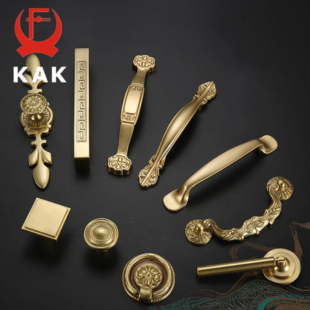 KAK Солидные Медные Ручки для Шкафов Кухонные Дверные Ручки Ручки для Ящиков Европейские Винтажные Латунные Золотые Фурнитурные Ручки
