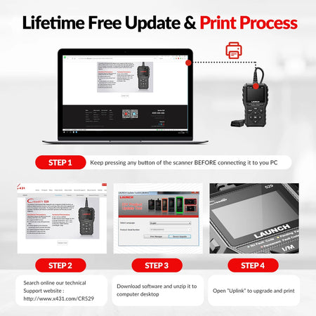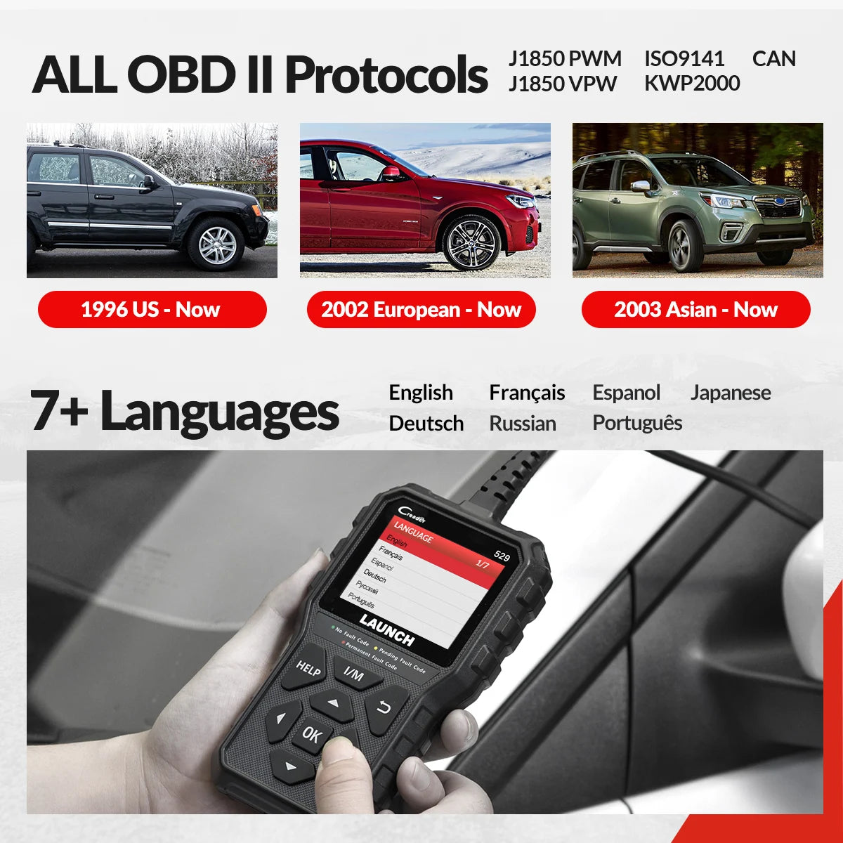 - LAUNCH CR529 — это сканер OBD2 для проверки двигателя. Он не может тестировать ABS, SRS (подушки безопасности) или любые другие системы, и он не может выполнять другие специальные функции.