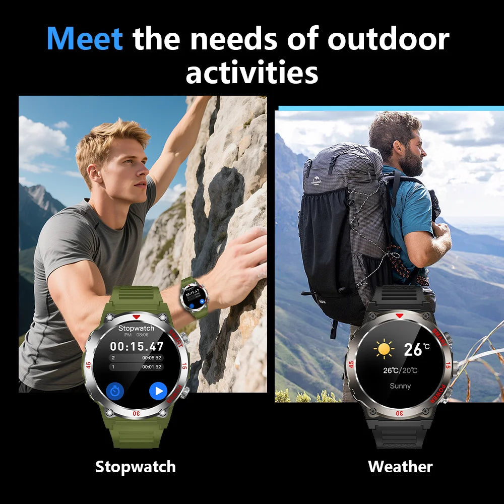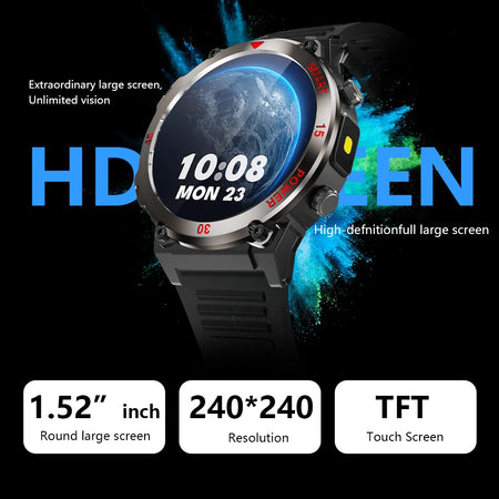 LAXASFIT 1.52 дюйма Мужские смарт-часы Bluetooth вызовы HR