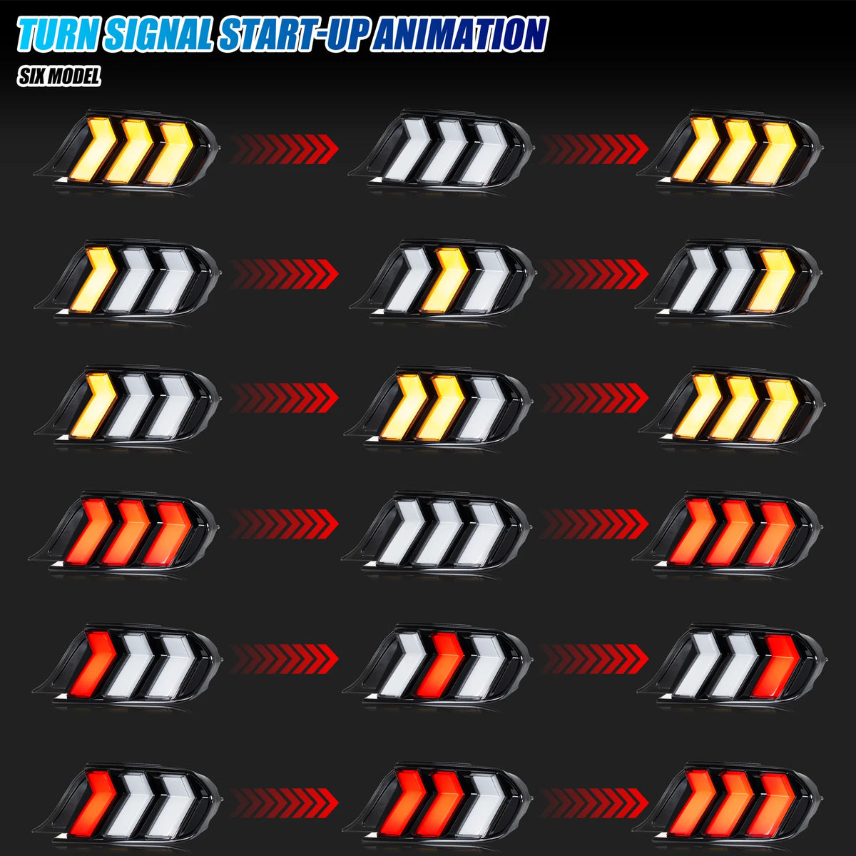 Upgrade your Ford Mustang S550 GT with the Ford Mustang 2015-2023 S550 GT Shelby LED RGB Tail Lights with Dynamic Animation. This plug-and-play tail light set is designed for 2015–2023 Mustangs and delivers an OE factory style look with a bold, modern edge. Enjoy vivid RGB lighting, eye-catching dynamic animation, and precise sequential turn signals that add a premium touch to your car's rear end. The integrated LED DRL, brake light, and reverse light enhance visibility for you and other drivers, improving nighttime safety while turning heads on every drive. Built for easy installation, these lights replace the originals directly with no splicing required, and installation instructions are included (professional installation is recommended if you’re not comfortable with wiring). Crafted from durable PC, ABS, PMMA, and glass, they are sealed for waterproof, dust and corrosion resistant performance in all weather conditions.