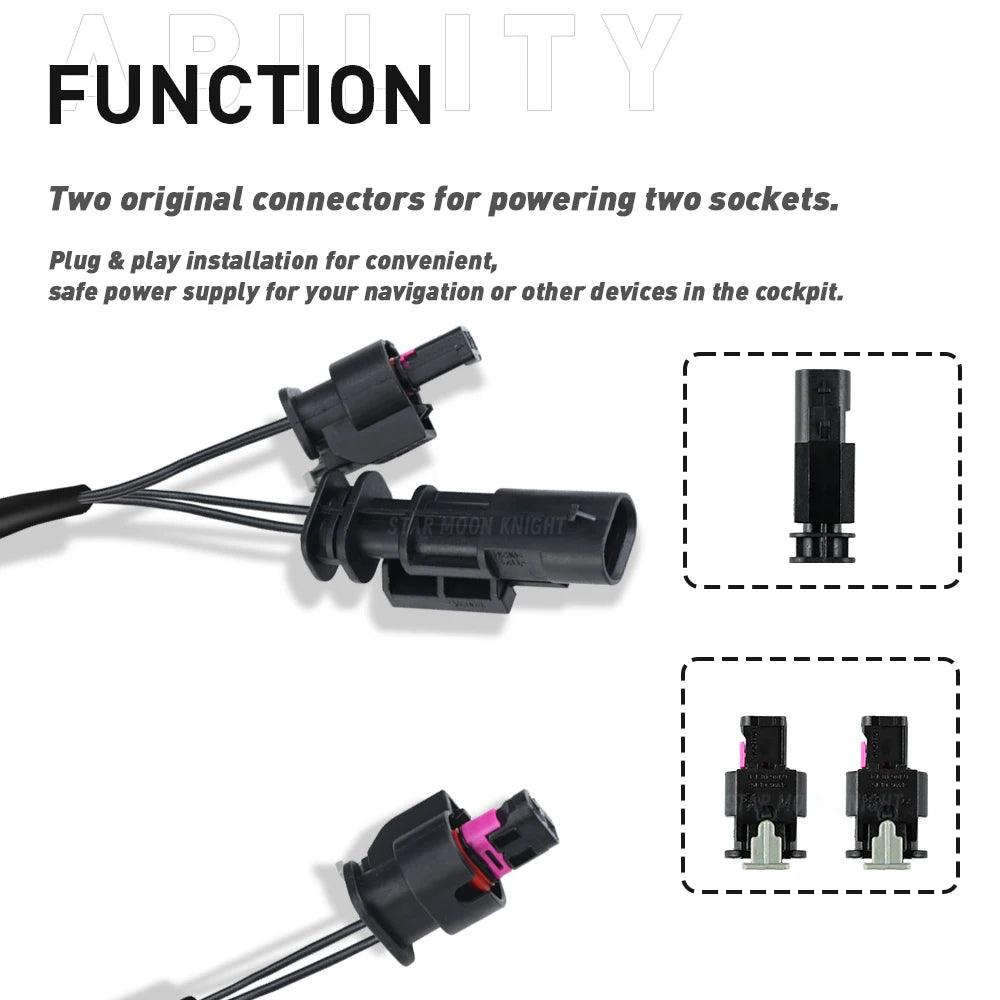 Комплект быстрого подключения BMW R1250GS для навигации и умных медиа в кабине ABS — это профессионально собранный Y-образный разветвитель, обеспечивающий безопасное решение питания «подключи и работай» для ваших устройств в кабине. Он подключается напрямую к бортовому источнику питания автомобиля, заменяя существующий разъём DIN или USB тремя предварительно настроенными разъёмами, готовыми к использованию. Этот умный жгут проводов интегрирован в бортовую сеть автомобиля, поддерживает порядок в кабине и обеспечивает надёжное питание навигационных и других умных медиаустройств.