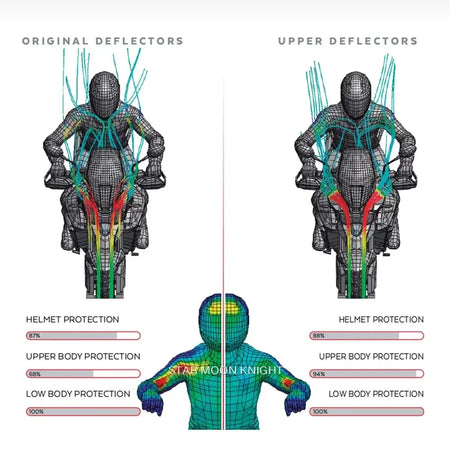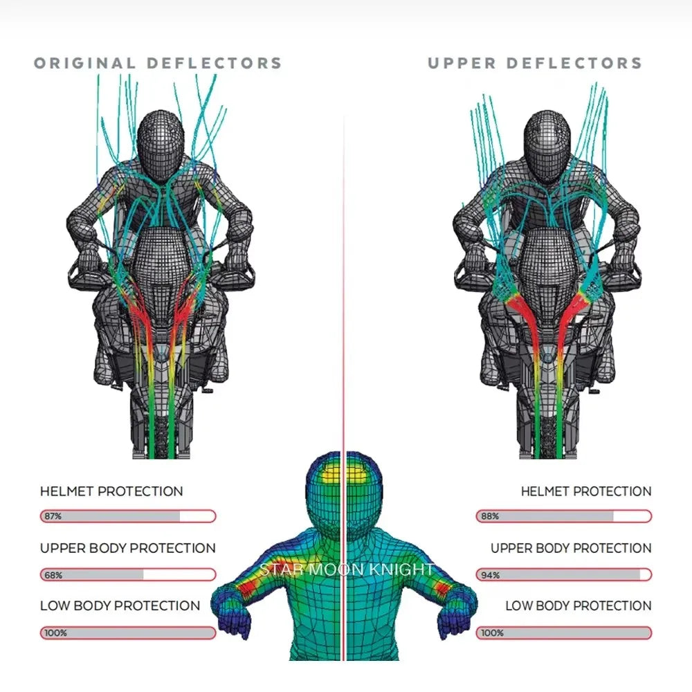 - Направляет воздух от плеч и торса, уменьшая усталость от ветра при длительных поездках по шоссе.