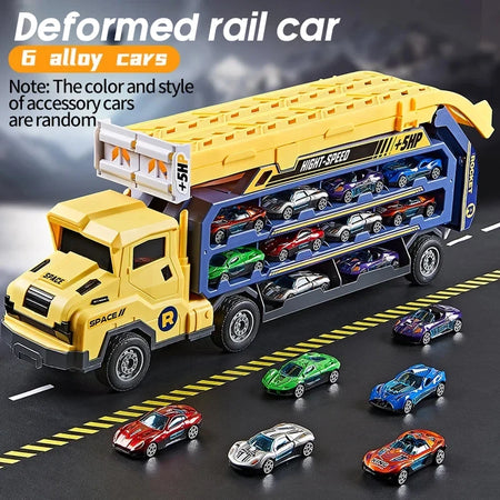 Познакомьтесь с CONUSEA Складным грузовиком-транспортировщиком гоночных автомобилей с алюминиевыми тележками, прочным набором игрушек из литого металла, созданным для любителей приключений. С алюминиевыми компонентами и прочным транспортировщиком из АБС-пластика эта игровая система 7-в-1 выдерживает часы интенсивного использования, при этом обеспечивая безопасность маленьких рук благодаря мягким краям и отсутствию острых деталей. Батарейки не нужны — только воображаемое вождение, подъем и гоночные действия, которые стимулируют творчество и решение проблем.