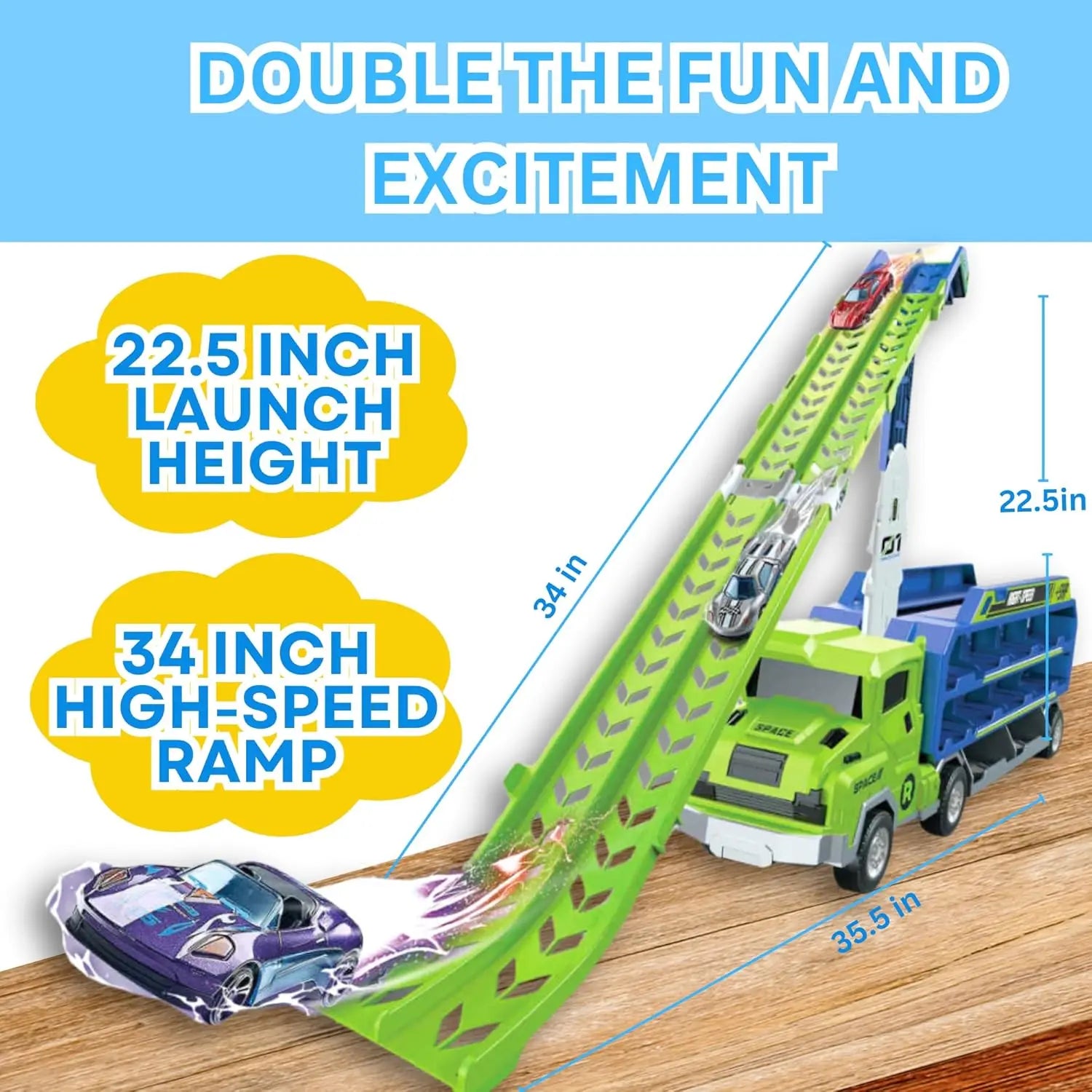 - Универсальность 7-в-1: разверните и поднимите складную трассу, чтобы открыть высокую двойную гоночную трассу для большого гоночного веселья с друзьями или братьями и сестрами.