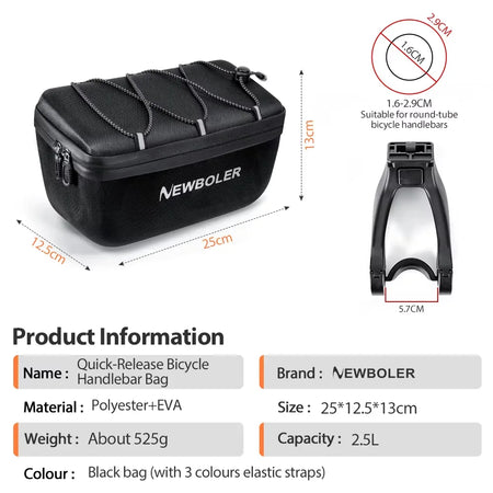 Велосипедная передняя сумка NEWBOLER 2.5L с жестким корпусом EVA для ежедневных поездок, водоотталкивающая сумка на руль