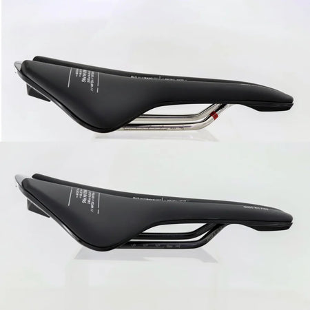 Основание выполнено из углеродного волокна с длинными волокнами, что обеспечивает баланс жёсткости и комфорта. Два независимых сектора с пенами переменной плотности последнего поколения обеспечивают целенаправленную поддержку на каждом этапе педалирования. В основе система PAS имеет широкий центральный канал и отверстия в основании для минимизации пиков давления даже при максимальном усилии на педали. Версия 147 мм добавляет дополнительную набивку по бокам и сверху для более широкой и прощающей базы по сравнению с вариантом 137 мм.