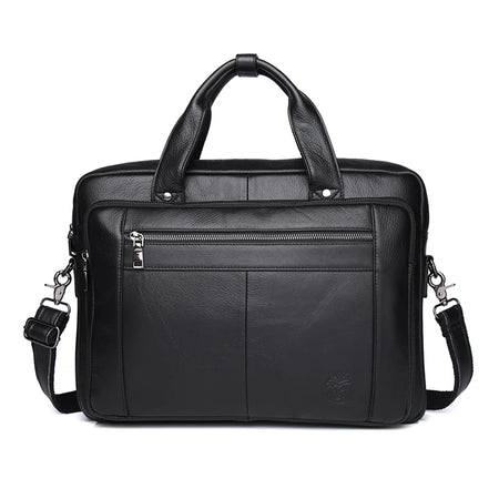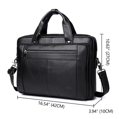 Schlatum Натуральная Кожаная 16-дюймовая Сумка-Портфель для Ноутбука для Мужчин Черная с Молнией Профессиональная Офисная Сумка