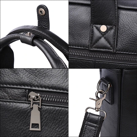 Познакомьтесь с мужским портфелем для ноутбука Schlatum из натуральной кожи в классическом черном цвете. Изготовленная из натуральной коровьей кожи, эта профессиональная офисная сумка сочетает в себе прочность и изысканный минималистичный дизайн. Сплошной черный внешний вид и надежная застежка-молния обеспечивают аккуратный внешний вид для встреч, поездок на работу или визитов к клиентам.