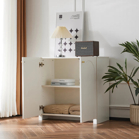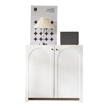 Кремовый белый буфет с арочным узором и золотыми ручками сочетает классическую элегантность с практичным хранением. Его очаровательный арочный узор и роскошные золотые ручки добавляют романтики и изящества любой спальне или жилому пространству. Изготовленный из высококачественных деревянных панелей, этот буфет предлагает стабильную, долговечную конструкцию, а также гладкую, приятную на ощупь поверхность, которую легко протирать.