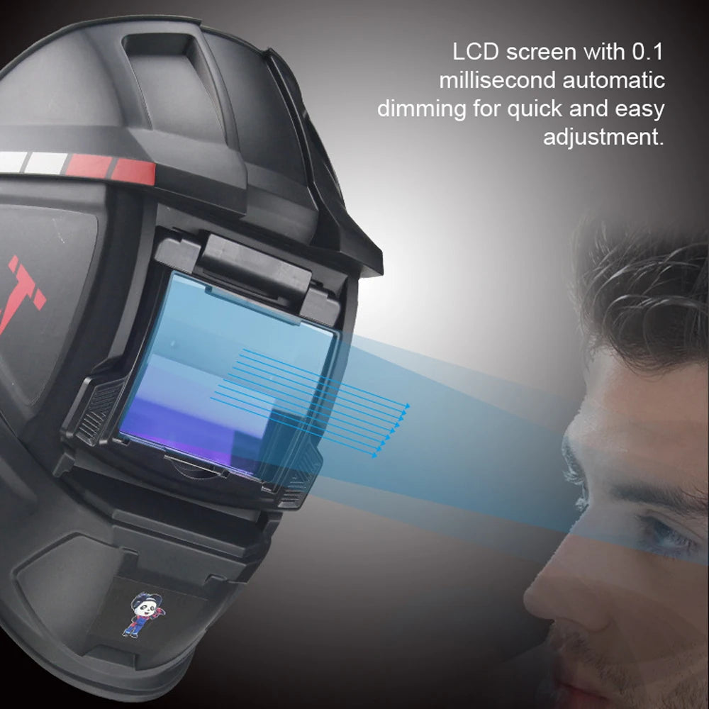 Почему стоит выбрать эту сварочную маску? Она сочетает в себе просмотр в истинных цветах с быстрым авто-затемняющим ЖК-датчиком с временем реакции 0,1 миллисекунды, так что вы видите свою сварочную ванну четко, без искажений цвета. Солнечная энергия и высокочувствительный датчик означают меньше замен батарей, а настраиваемая чувствительность и задержка позволяют адаптировать щиток к вашему стилю сварки и материалам. Изогнутый, прозрачный экран снижает усталость глаз и обеспечивает надежную защиту от тепла и искр, с температурной устойчивостью до 130°C и высокой стойкостью к высоким температурам и коррозии. Этот шлем, созданный для долговечности, изготовлен из высококачественных материалов и оснащен фиксирующей ручкой для легкой и надежной посадки, а также имеет стильный дизайн, который не допускает сварочного дыма к вашей шее.