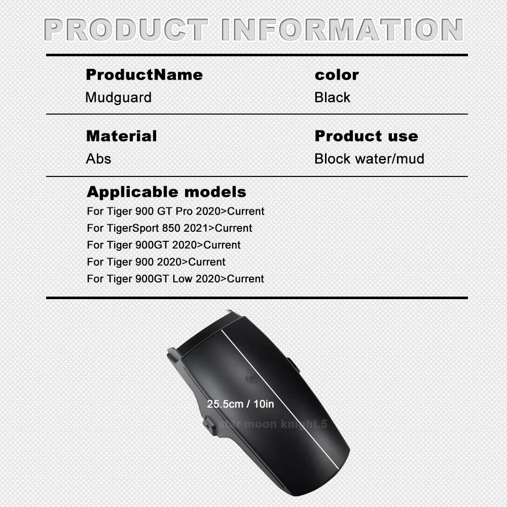 Совместим с рядом популярных моделей, включая Tiger 900 GT Pro 2020, Tiger 900 GT 2020, Tiger 900 2020, Tiger 900 GT Low 2020 и Tiger Sport 850 2021, этот удлинитель обеспечивает значительное дополнительное покрытие длиной 25,5 см (10,03 дюйма), чтобы защитить переднюю часть от камней и дорожного мусора. Произведён в материковом Китае, этот удлинитель является практичным и выгодным улучшением для райдеров, которые хотят лучшую защиту передней части без ущерба для производительности или внешнего вида.