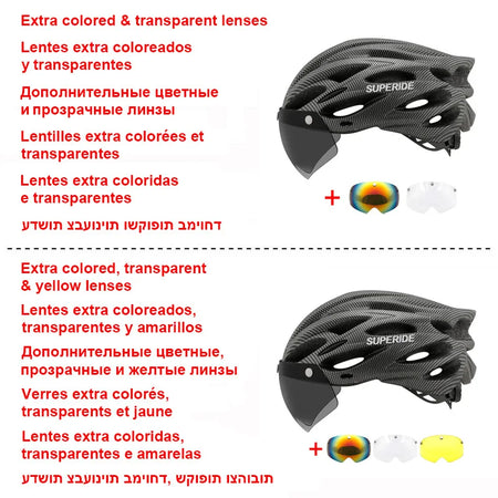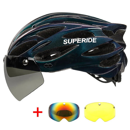 Ультралегкий велосипедный шлем с магнитными очками и солнечным визором 230g