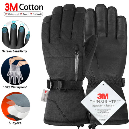 Термальные зимние водонепроницаемые перчатки с сенсорным экраном для мужчин и женщин, ветронепроницаемые