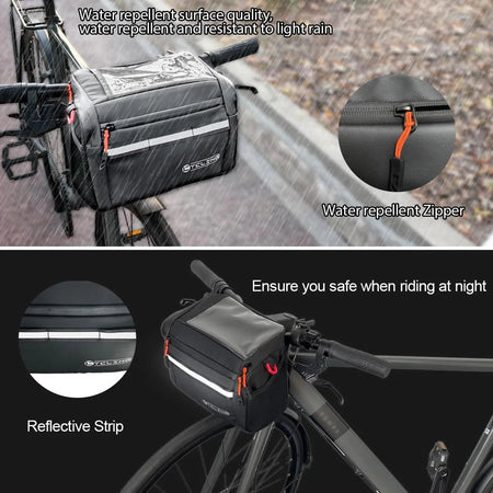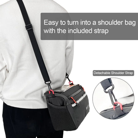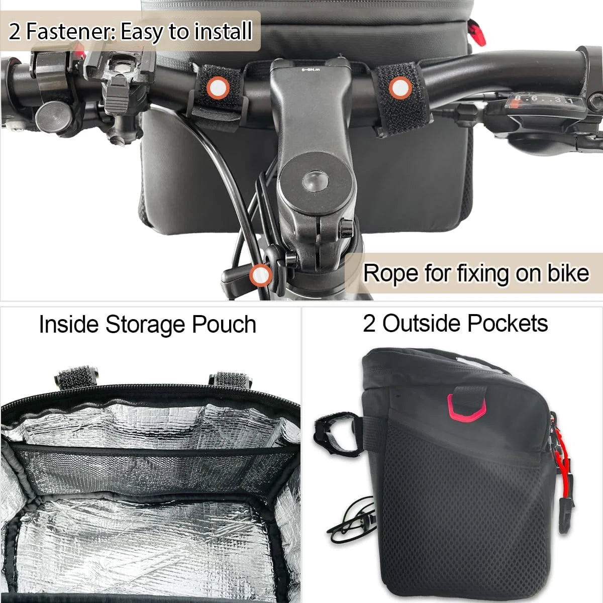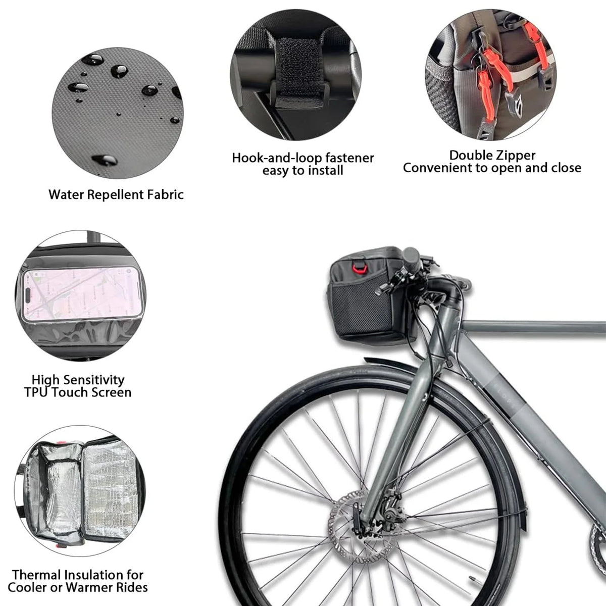 Представляем сумку Toptrek Bag 01 4L для руля — компактное, изолированное решение для хранения, созданное для повседневных велосипедных поездок. С объемом 4 литра она аккуратно организует ваш кошелек, телефон, полотенце и мелкие инструменты, обеспечивая легкий доступ. Корпус из полиэстера разработан для использования на улице, обеспечивая защиту от дождя, чтобы вы были готовы к изменяющейся погоде. Изоляция помогает сохранять закуски и напитки теплыми во время прохладных поездок, что делает ее идеальной для зимнего велоспорта или длительных поездок на работу. Универсальная по дизайну, она может использоваться как передняя сумка на трубе велосипеда, практичная сумка через плечо вне велосипеда или сумка для сохранения тепла с быстрым доступом к необходимым вещам. С каждой стороны есть эластичные сетчатые карманы для бутылок с водой, а светоотражающая краска повышает видимость для безопасной езды ночью. Созданная для ежедневного использования, эта сумка сочетает в себе прочность, устойчивость к погодным условиям и удобное хранение в одном умном решении.