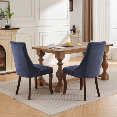 Городская роскошь Два обеденных стула с деревянной рамой синего цвета из шенилла