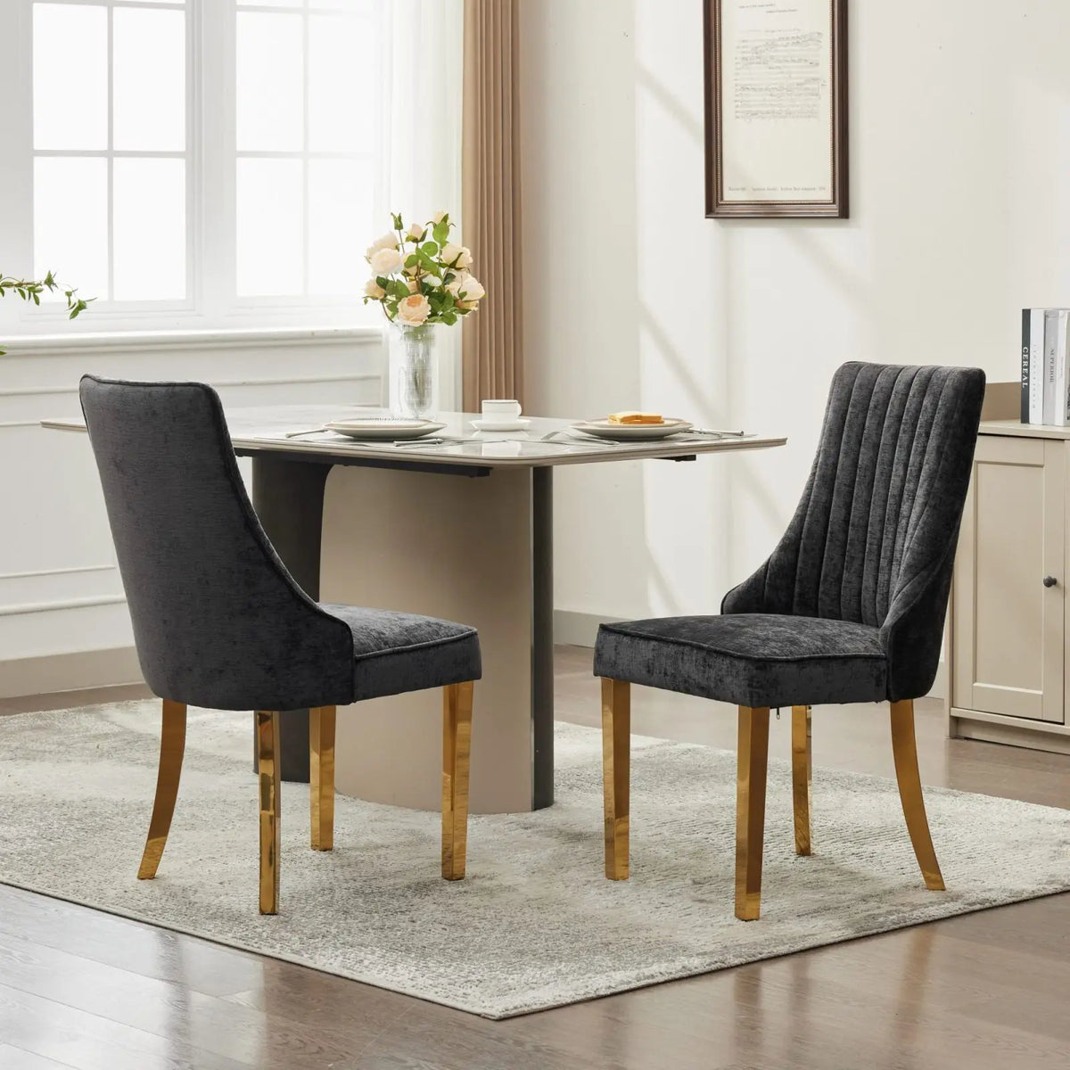 Набор обеденных стульев UrbanL из 2 штук, шенилл, темно-серый, с позолоченными ножками