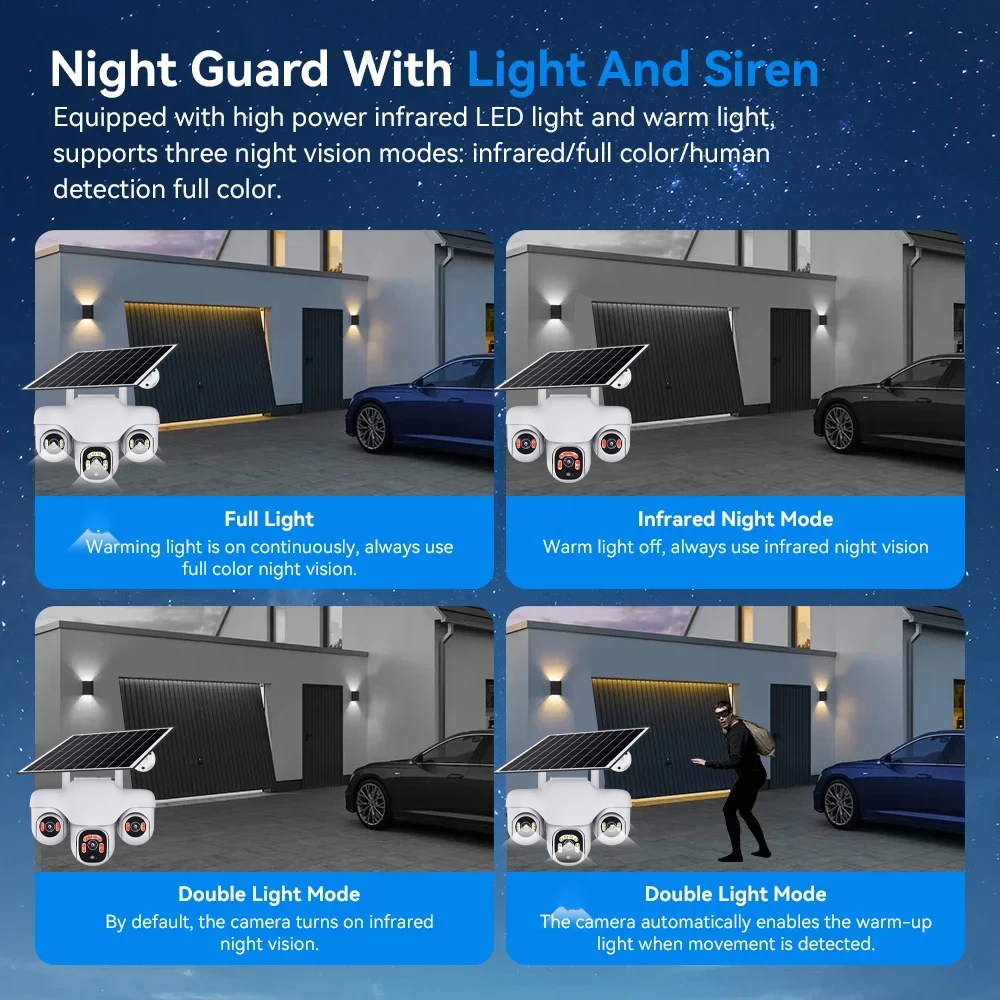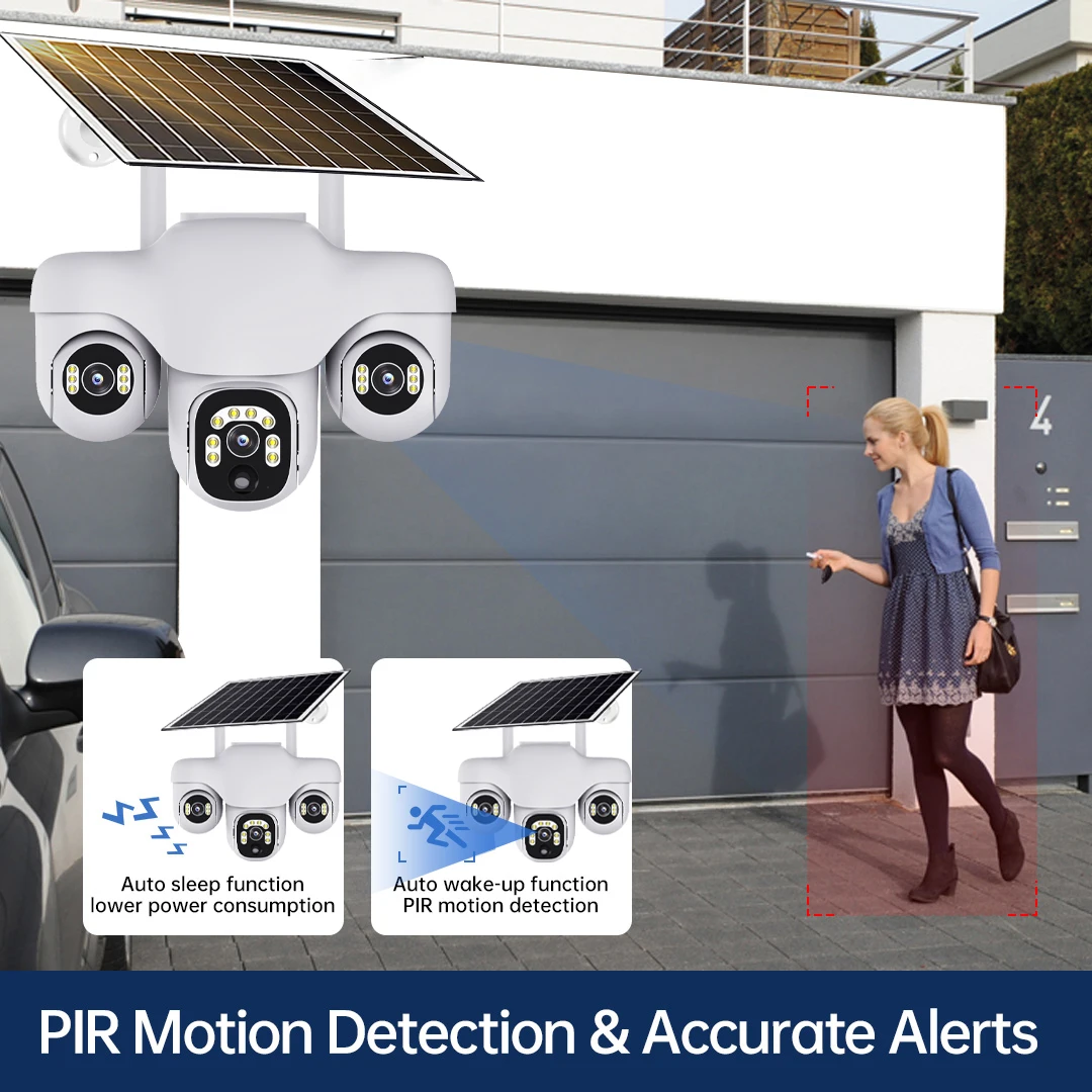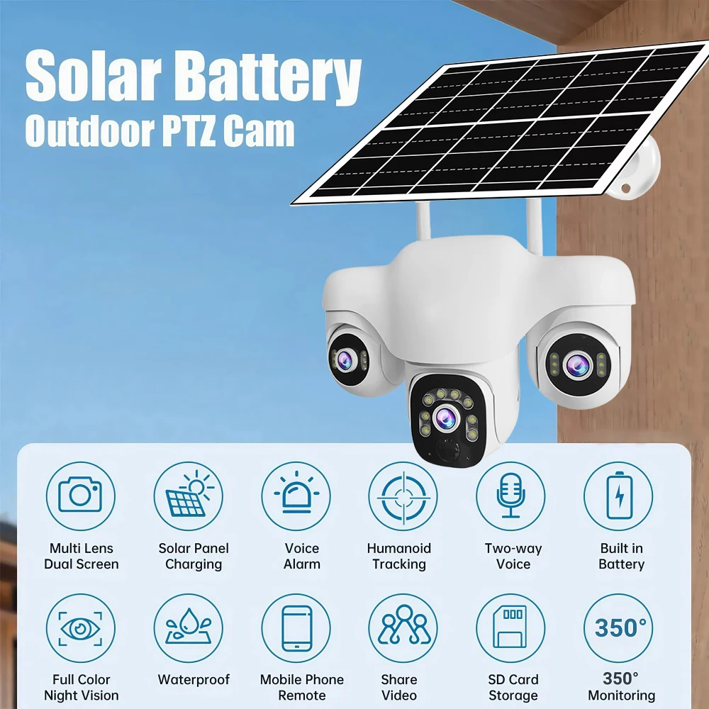 V380 Pro 4G Солнечная камера 15MP 10X Зум Тройная линза CCTV Уличная Тройная экран PIR Датчик движения Безопасности Наблюдения камера