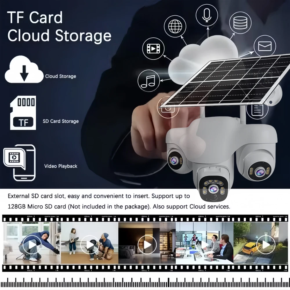Встроенный слот для карты TF, поддерживает максимум до 128 ГБ (по желанию), позволяет записывать видео через Micro TF/SD карту или облачное хранилище.
