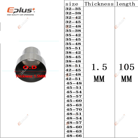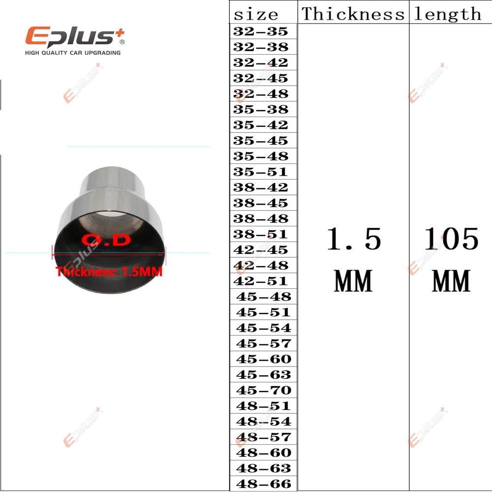 Представляем Универсальный редуктор выхлопной трубы из нержавеющей стали для автомобилей и мотоциклов от Eplus+. Этот универсальный прямой адаптер соединяет выхлопные трубы диаметром от 51 мм до 89 мм, обеспечивая точную и надежную посадку для широкого спектра транспортных средств. Изготовленный из прочной нержавеющей стали, он устойчив к коррозии и сохраняет производительность в сложных условиях эксплуатации.