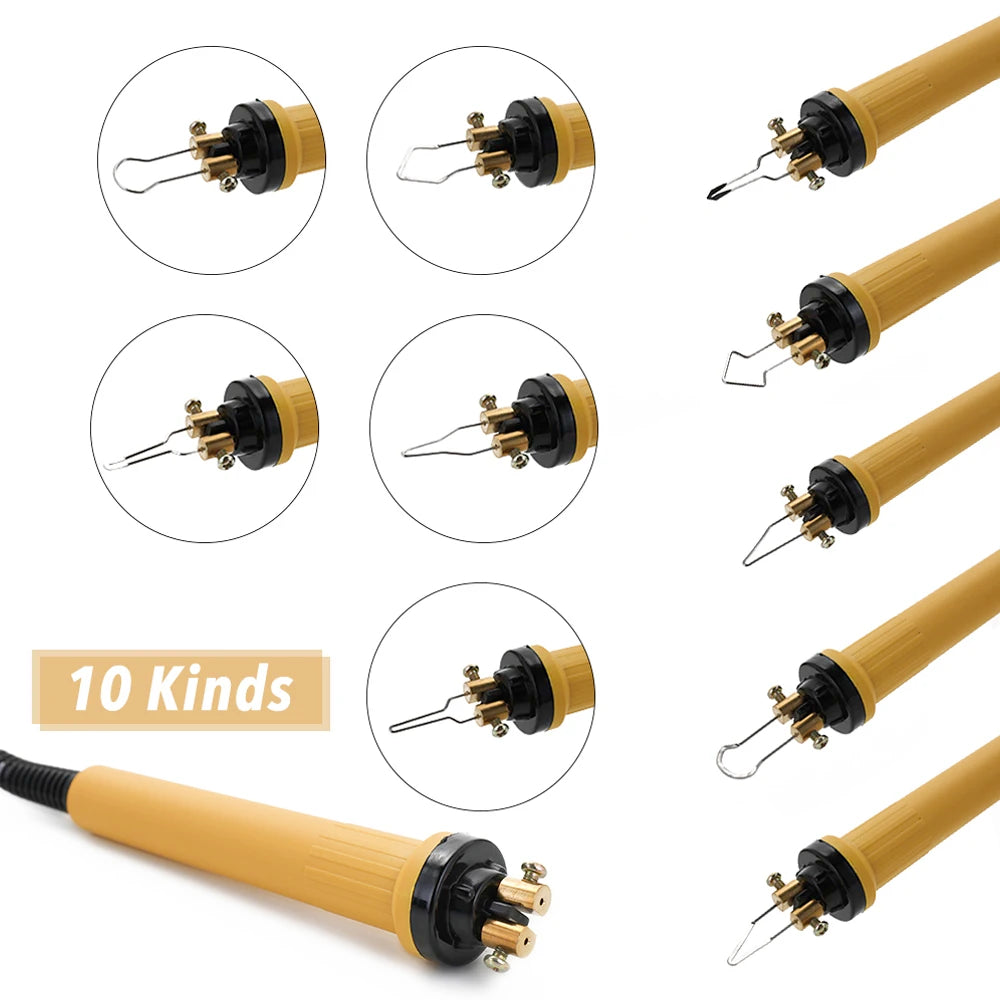 - Достигайте точных линий и плавного затенения с десятью сменными проволочными насадками, предназначенными для различных стилей.