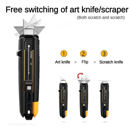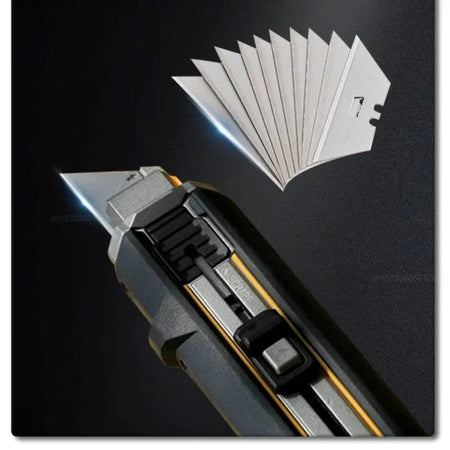 Этот набор ToughBuild включает в себя тяжелый художественный нож с лезвиями из углеродной стали, предлагая черно-желтую цветовую схему для легкой видимости. Изготовленный из материала цинкового сплава, он противоскользящий и износостойкий, с двумя формами для универсального использования. Модель — это деформационный художественный нож, происходящий из материкового Китая, и имеет острое лезвие для чистых резов без высокоопасных химикатов.