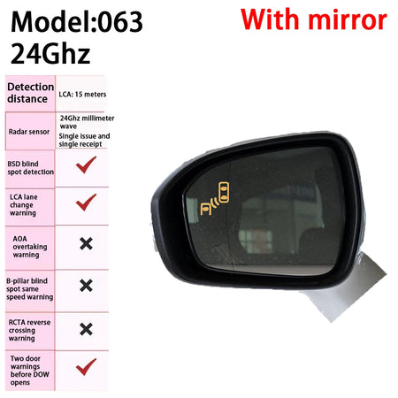 - Улучшите безопасность смены полосы на загруженных автомагистралях, получая своевременные визуальные и звуковые сигналы, когда транспортные средства или объекты занимают ваши слепые зоны.