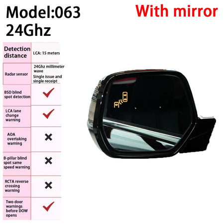 Доступны два основных варианта установки: дисплей с линзой, в который встроен световой индикатор, или версия с автомобильным дисплеем, показывающая предупреждающий свет внутри треугольного окна. В обоих режимах система интегрируется с такими функциями, как LCA (помощь при смене полосы) и BSD (мониторинг слепых зон), и поддерживает дополнительные предупреждения, такие как AOA (активное предупреждение о обгоне) и RCTA (предупреждение о заднем пересечении). Дополнительное предупреждение DOW (предупреждение об открывании двери) может еще больше повысить осведомленность, когда рядом открываются двери.