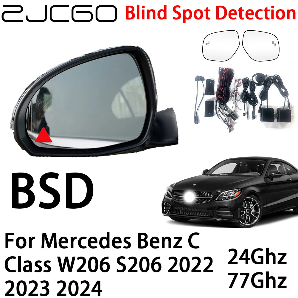 Система предупреждения о слепых зонах Mercedes-Benz C-Class W206/S206 от ZJCGO предлагает современный мониторинг слепых зон, разработанный для повышения безопасности вашей поездки. Два радара mmWave, установленные на заднем бампере, постоянно сканируют задние стороны, обнаруживая движущиеся объекты на расстоянии от 3 до 10 метров от вашего автомобиля. Когда цель попадает в зону предупреждения, система активирует светодиодные индикаторы и подает звуковые сигналы, помогая вам безопаснее менять полосы и снижать риск боковых столкновений. Система разработана для интеграции с моделями Mercedes-Benz C-Class W206/S206 с 2022 по 2024 год и поддерживает индивидуальные зеркала для всех моделей автомобилей — отправьте ваши оригинальные зеркала на наш завод, и наши инженеры адаптируют шаблон лазерного предупреждающего света под ваш интерьер, не изменяя цену.