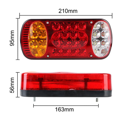 Tieto zadné svetlá kombinujú energeticky efektívnu LED technológiu s pevným vodotesným prevedením (IP65), aby fungovali aj v daždi, prachu a vibráciách. S 32 LED diódami na jednotku vyžarujú jantárové, červené a biele svetlo, aby jasne indikovali brzdenie, otáčanie, jazdu a cúvanie. Univerzálny prevádzkový rozsah 12–24V ich robí vhodnými pre širokú škálu ťažkých vozidiel - od flotíl Ford pickupov po prívesy, karavany a terénne nákladné nosiče. Osvetľovacie funkcie sú zapojené pre jednoduchú integráciu: Čierna je negatívna, Červená je brzda, Žltá je smerovka, Modrá je zadné svetlo a Biela je jazdné svetlo. Kompaktné rozmery (210×95×56 mm) zabezpečujú čisté uchytenie na väčšine štandardných puzdier, pričom zachovávajú robustné, vodotesné tesnenie. Všetky elektronické a mechanické zariadenia, prístroje a stroje predávané spoločnosťou InterCyprus do krajín EÚ sú certifikované CE a majú dvojročnú záruku. Na intercyprus.com od roku 2002 — dôveryhodné pre kvalitu a spoľahlivosť.