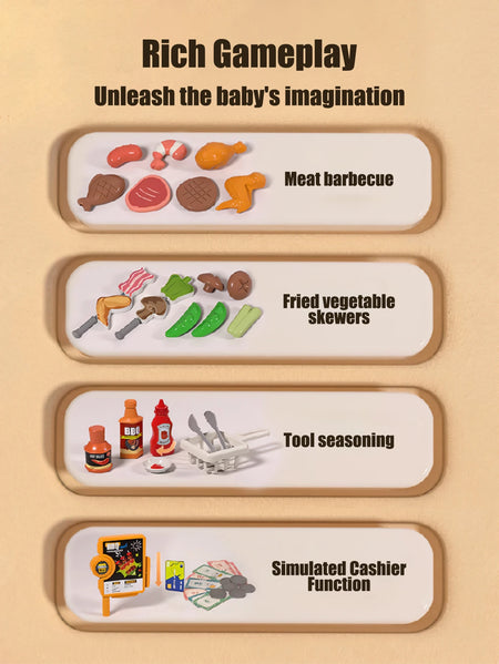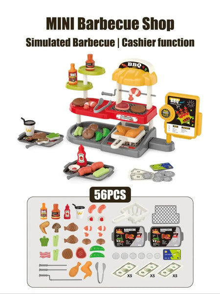 Mini grilovací obchod hračky 56 kusov so zvukovou simuláciou pre deti