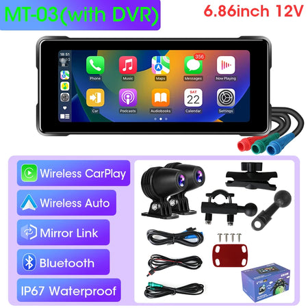 Develuck Motocykel DVR GPS CarPlay Vodotesný s 6.86 palcovým IPS displejom, Bluetooth, Android Auto