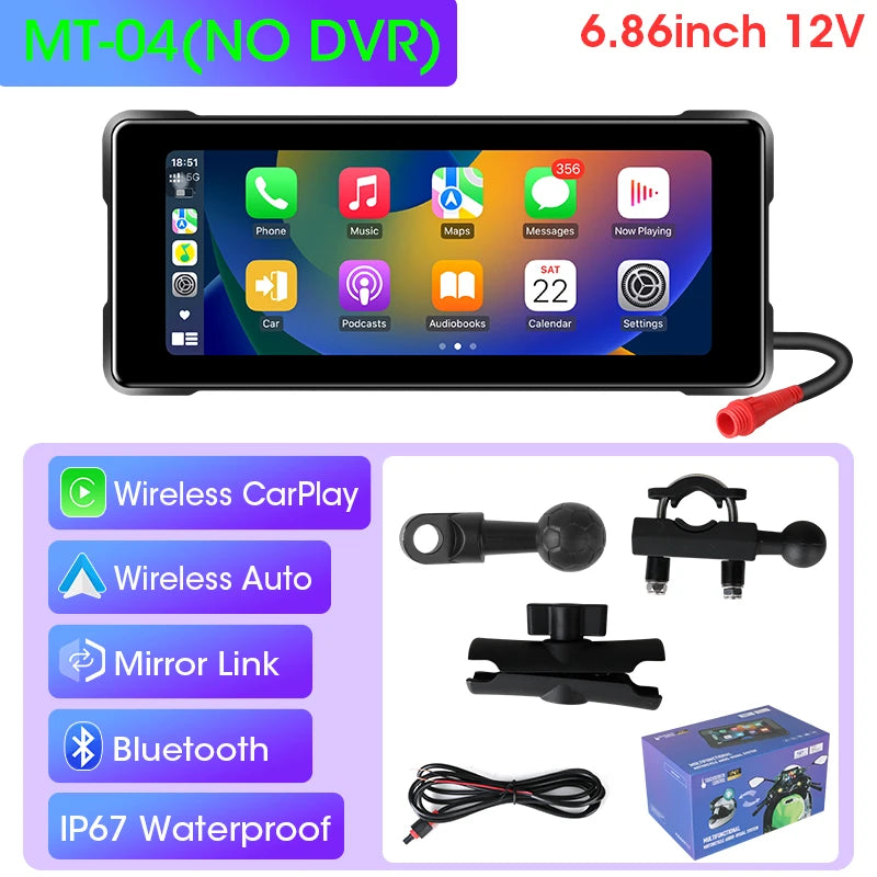 6.86 palcový motocykel auto DVR bezdrôtový CarPlay Android Auto prenosný GPS navigačný displej Bluetooth IPX7 vodotesný od Develuck je kompaktné, všetko‑v‑jednom infotainment centrum postavené pre vodičov na cestách. Jeho jasný IPS displej poskytuje ostré farby a jasné detaily pri 800 x 480, čo uľahčuje čítanie máp, správ a médií na cestách. S bezdrôtovým CarPlay a Android Auto môžete pripojiť svoj iPhone alebo Android zariadenie cez Bluetooth a WiFi, aby ste mali prístup k navigácii, hudbe, hovorom a ďalším bez neporiadnych káblov. Univerzálny stojan poskytuje flexibilné montovanie pre motocykle, autá alebo iné kompatibilné vozidlá, takže môžete ľahko nainštalovať a preusporiadať. IPX7 vodotesnosť udržuje jednotku pripravenú na mokré podmienky, zatiaľ čo podpora pamäťových kariet až do 128GB zabezpečuje dostatok miesta pre mapy a HD video. Podpora prednej a zadnej kamery pridáva ďalšiu vrstvu bezpečnosti pre každú jazdu alebo cestu.