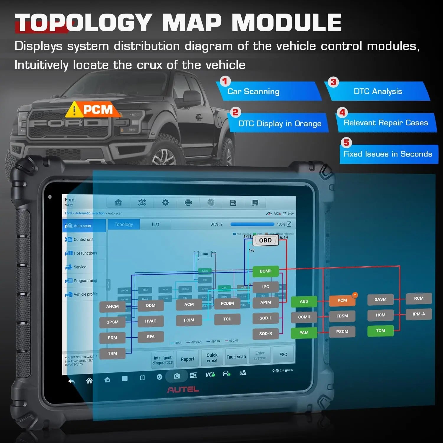 - Funkcie: Najlepší automobilový diagnostický skener, programovanie a kódovanie ECU, topologická mapa, 40 služieb, obojsmerná kontrola, FCA Autoauth