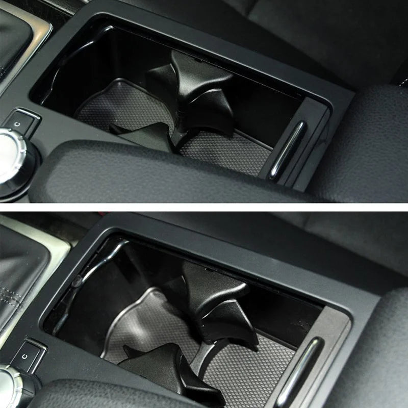 Priložená deliacia doska pomáha oddeliť poháre alebo malé predmety, čím zabraňuje pohybu, prevrhnutiu a hluku počas jazdy. Je to jednoduché, praktické vylepšenie, ktoré zvyšuje každodennú použiteľnosť a zachováva pôvodnú estetiku interiéru vášho Mercedesu.