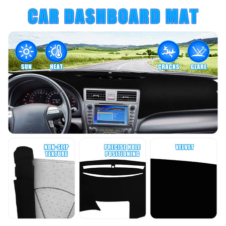 Chráňte palubnú dosku vášho Toyota Camry pred poškodením slnkom a oslnením s týmto slnečným clonom na palubnú dosku, ktorý je presne prispôsobený pre modely Camry z rokov 2007–2011 (iba pre modely s ľavostranným riadením). Vyrobený z PU kože s protišmykovou silikónovou spodnou vrstvou, bezpečne drží na mieste a chráni vašu palubnú dosku pred teplom, vyblednutím a prasklinami. Výsledkom je chladnejšia kabína, znížené oslnenie počas slnečných dní a osviežený vzhľad interiéru, ktorý pomáha udržiavať hodnotu pri predaji. S presnými pozíciami otvorov pre ventily a ovládacie prvky sa hladko prispôsobí bez toho, aby prekážal prístrojom alebo prúdeniu vzduchu. Ľahký a jednoduchý na inštaláciu, tento kryt je praktickým vylepšením, ktoré spája funkciu so štýlom.