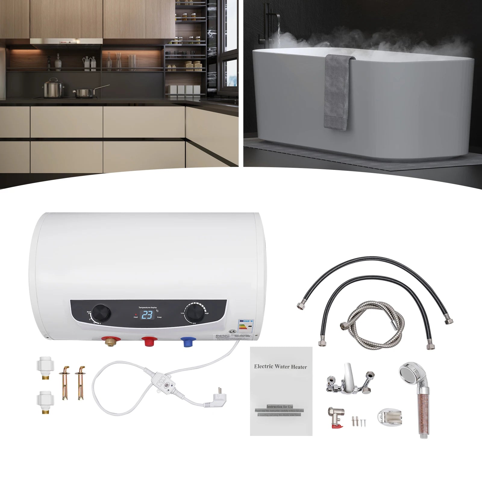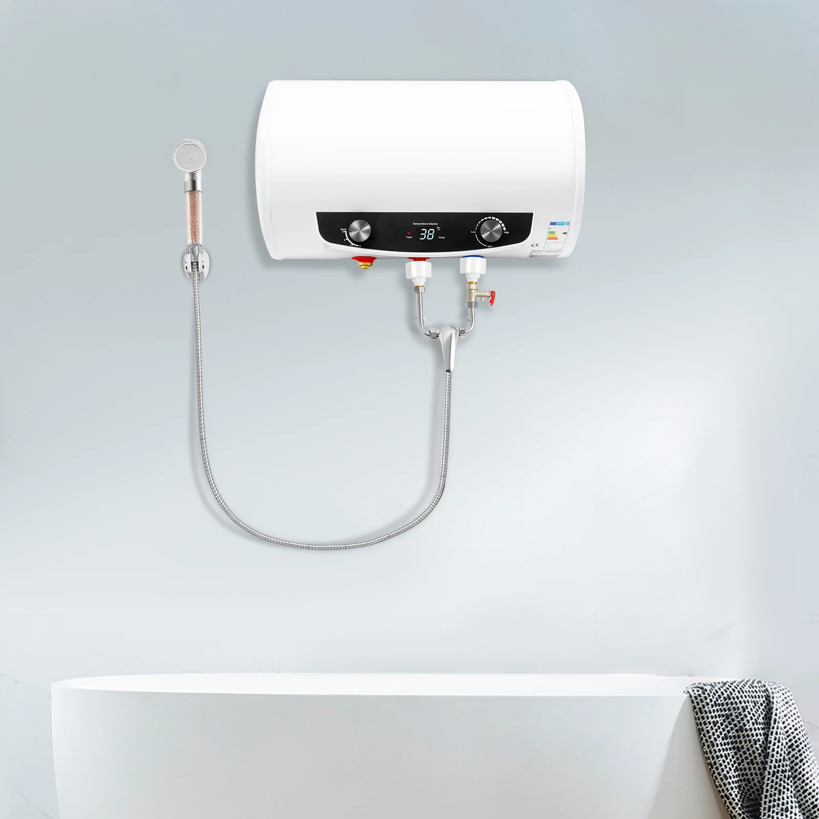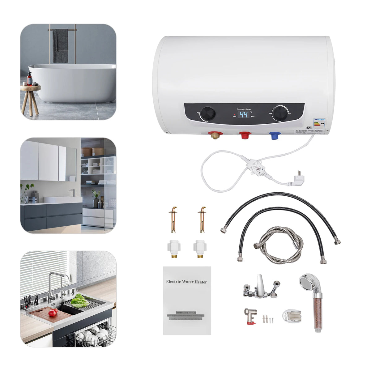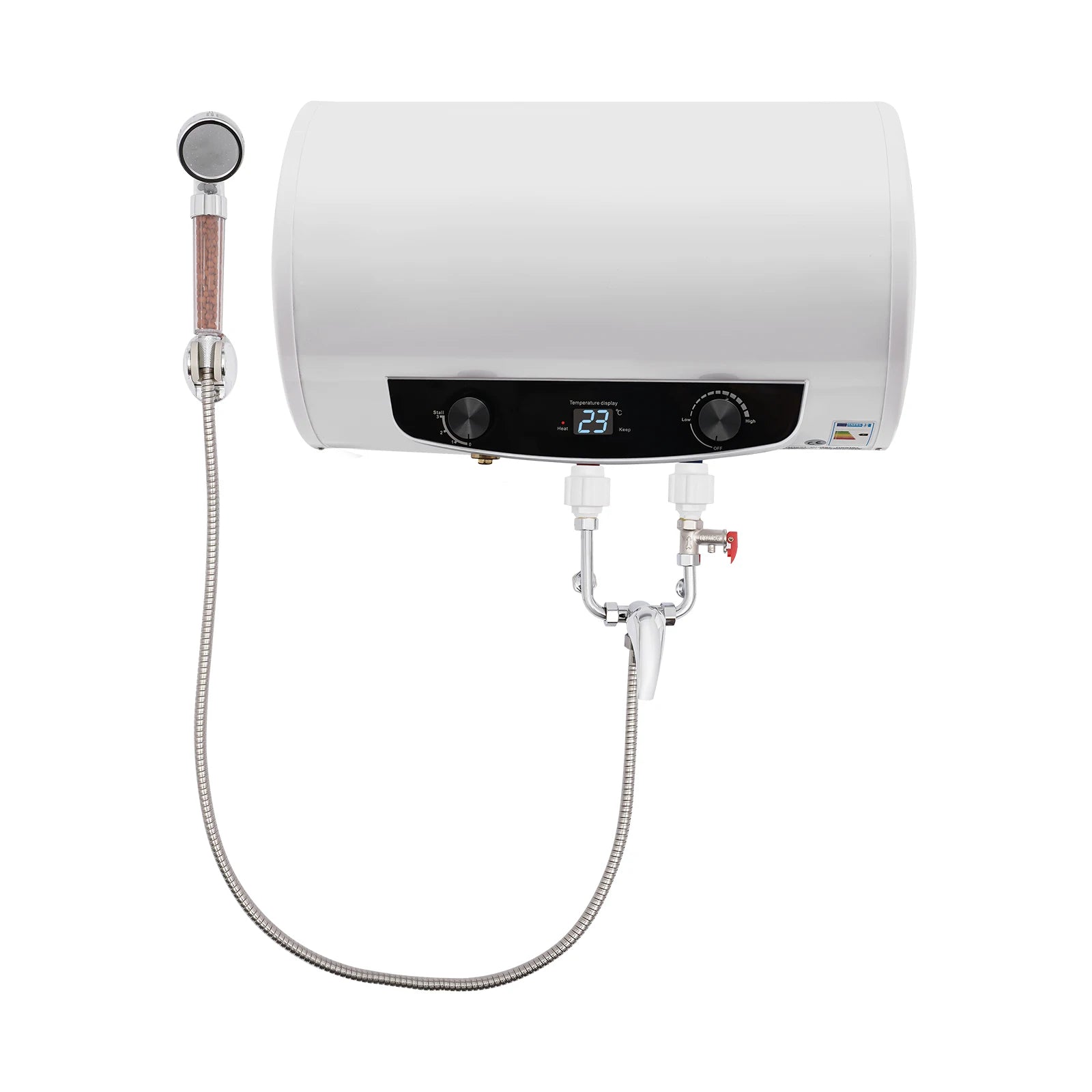 Predstavujeme ohrievač vody pod drezom — okamžité, na stenu montované riešenie, ktoré dodáva horúcu vodu na požiadanie priamo pri vašom kuchynskom dreze. S výkonným 2000W vykurovacím prvkom a kapacitou 35L si užijete rýchlu horúcu vodu na varenie, čistenie a čaj alebo kávu bez čakania. Jednotka obsahuje špeciálny kohútik a ručnú sprchu, čo vám poskytuje flexibilné dodávanie horúcej vody presne tam, kde ju potrebujete.