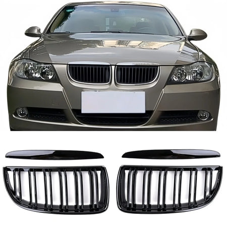 - Osvieženie prednej časti vozidla: leskle čierna dvojlamelová mriežka obličiek okamžite modernizuje vzhľad vášho BMW E90/E91 a dobre ladí s tmavými akcentmi a čiernymi detailmi.