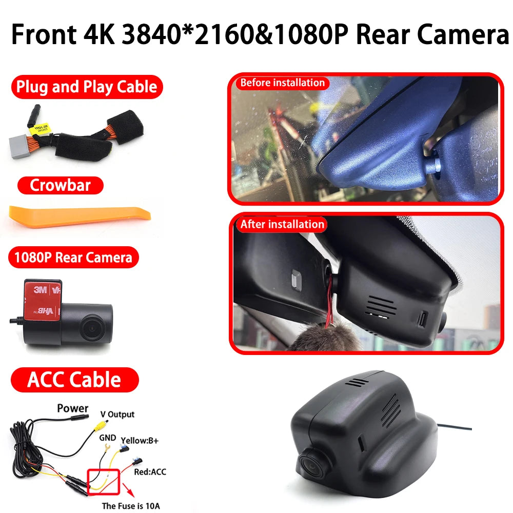 - 4K predný záznam plus zadný 1080p vám poskytuje podrobné dôkazy z oboch koncov vozidla, ideálne pre poistné nároky alebo bezpečnostné kontroly.