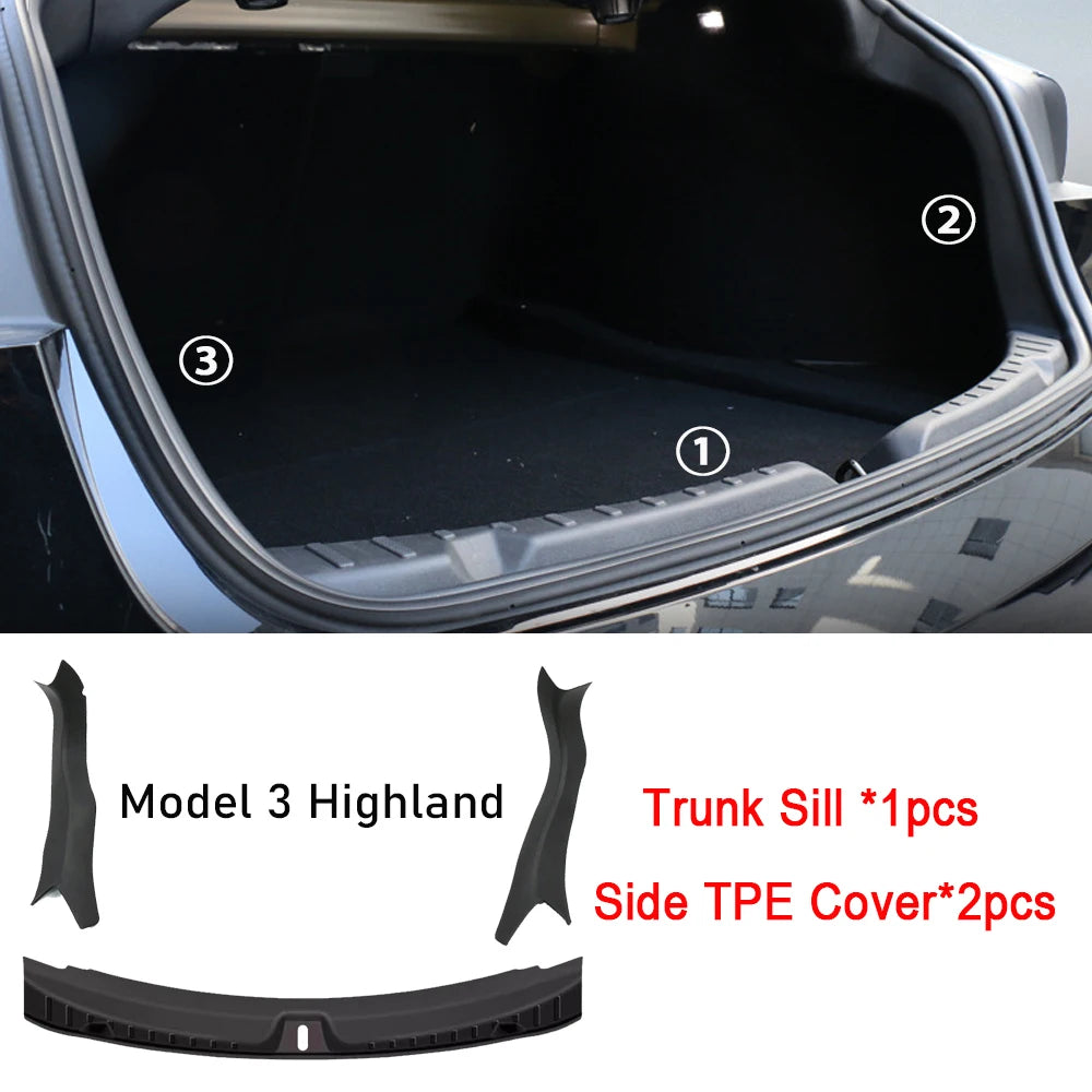 Ochranný kryt prahu batožinového priestoru pre Tesla Model 3 Highland, proti poškriabaniu, TPE vnútorný ochranný prvok